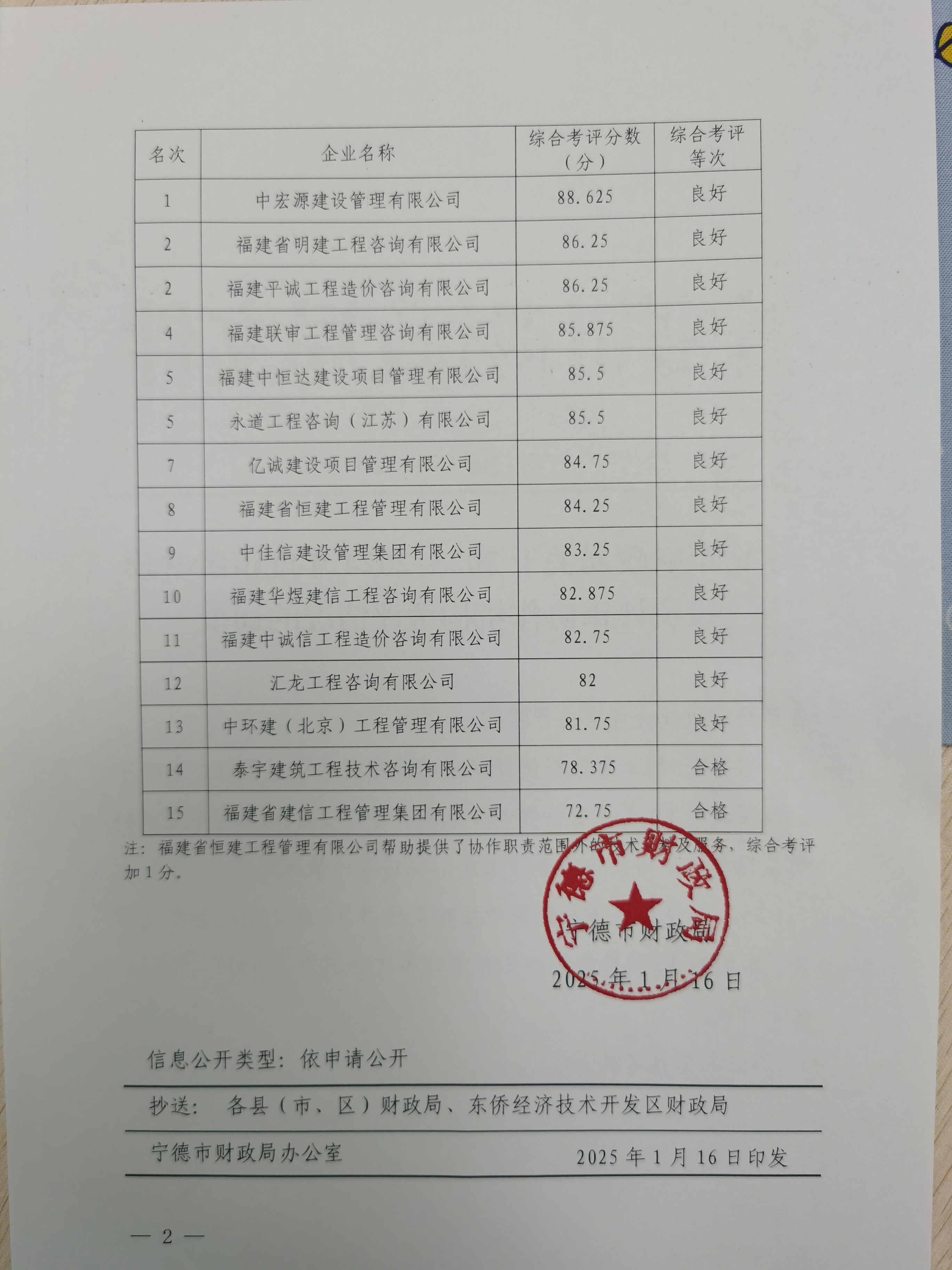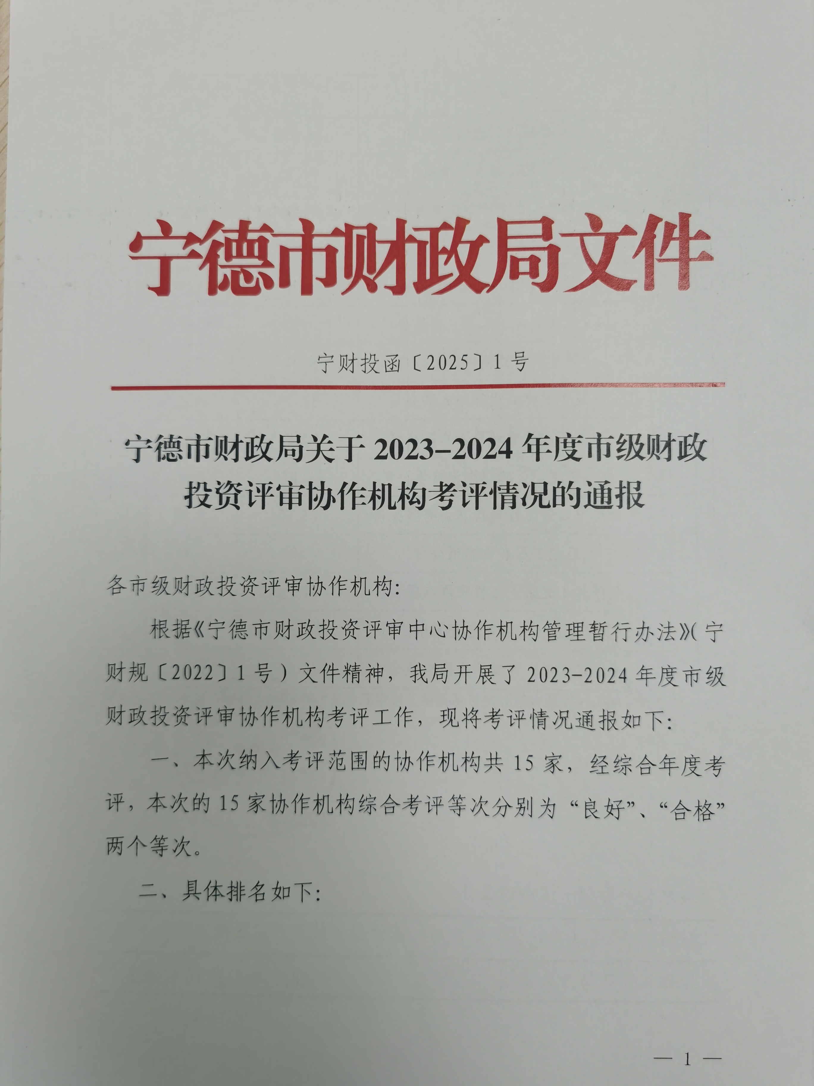 熱烈祝賀中宏源建設(shè)管理有限公司在寧德市財(cái)政局2023 - 2024年度市級(jí)財(cái)政投資評(píng)審協(xié)作機(jī)構(gòu)考評(píng)中斬獲第一名!這一殊榮的獲得,是公司發(fā)展歷程中的重要里程碑,更是公司全體人員共同努力的結(jié)果。
